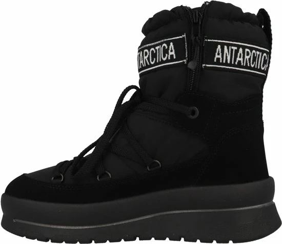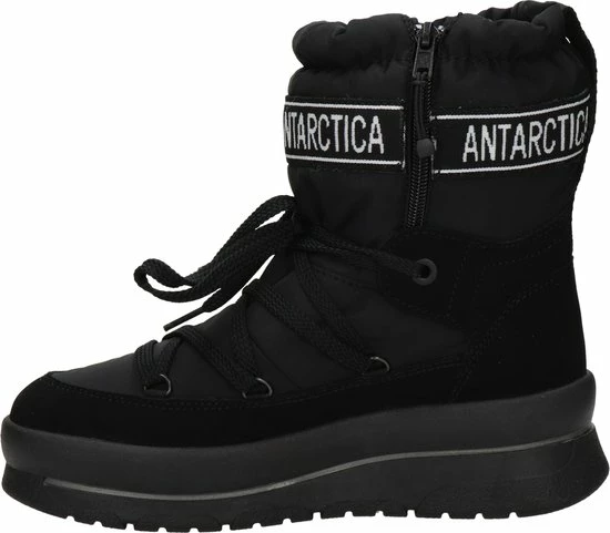 Antarctica AN 6187 zwart snowboots dames De Antarctica 6187 is een snowboots met vintage uitstraling. Dit model heeft een lage schacht, gevoerd met synthetische wol. De snowboot voor dames heeft een decoratieve veter, aantreklus en rits voor een makkelijke in- en uitstap. Deze fancy snowboots zijn geweldig voor koude dagen en sneeuw, maar ook als trendy fashion statement. Kleur: zwartMateriaal bovenwerk: suede, polyester