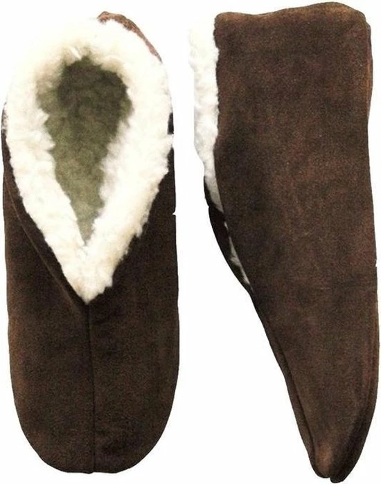 Bruine Spaanse sloffen voor dames/heren. Deze echte Spaanse sloffen van het merk Bernardino worden in Spanje gemaakt. De sloffen zijn iets hoger dan de reguliere Spaanse sloffen, waardoor ze een betere pasvorm hebben en meer comfort bieden. Materiaal buitenzijde: 100% hoge kwaliteit suede, binnenzijde: 80% zachte acryl/20% wol. Voor optimaal loopcomfort zit er tussen het suede en de voering een dikke vilten zool.