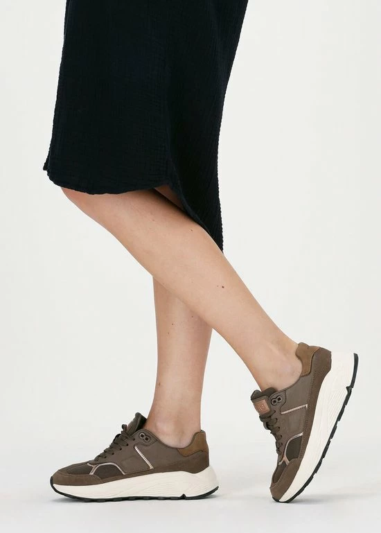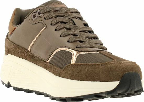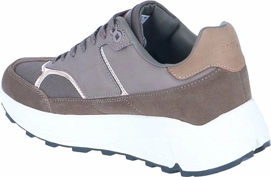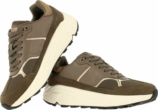 Deze Bjorn Borg R1300 sneakers in de kleur taupe zijn gemaakt van imitatieleer. De voering is gemaakt van textiel en de comfortabele binnenzool is van synthetisch materiaal. Ter decoratie zijn verschillende inzetten van suède, sierstiksels, merkopdrukken en rosè gouden details aangebracht. Door middel van een veter trek je de schoen gemakkelijk aan en uit. Met de chunky witte zool val je zeker op. De zool is gemaakt van rubber en heeft een dikte van 3 centimeter. Goed om te weten: het voetbed van deze Bjorn Borg R1300 sneakers is niet uitneembaar.