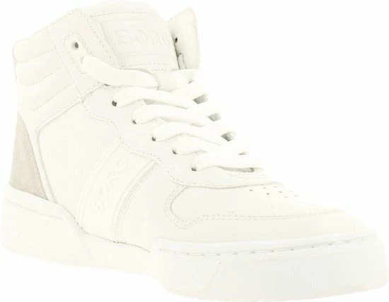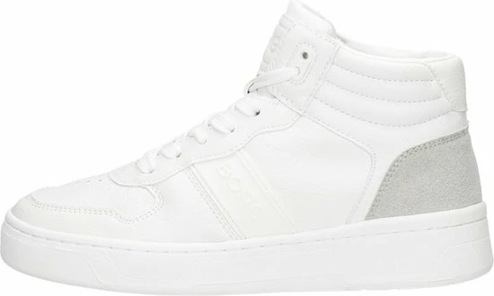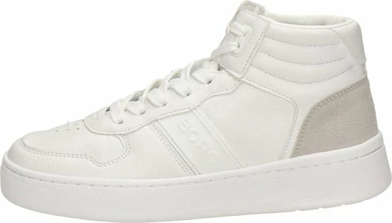 Met de witte Björn Borg T2200 hoge sneakers loop je er stijlvol bij. Dit model heeft een bovenwerk van synthetische materialen met perforaties en merkopdrukken. De voering is gemaakt van textiel en de comfortabele binnenzool van leer, waardoor de schoenen van binnen zacht aanvoelen en stevig lopen. Met de veters sluit je de schoenen en pas je de pasvorm aan naar wens. De sneakers hebben een rubberen loopzool met een dikte van 2 centimeter. De witte Björn Borg T2200 veterboots hebben een vast voetbed.