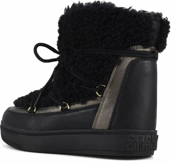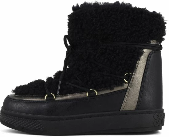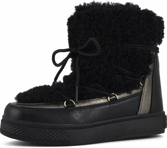 Een super comfortabele winterse sneeuwlaars met een afwerking van gekrulde fabric waarin mode en functionaliteit samenkomen.