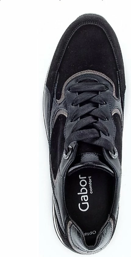 Gabor sneaker voor dames, artikel . in het zwart nubuck leer. De sneaker is beschikbaar met uitneembaar voetbed. Afkomstig uit de Gabor comfort lijn. De pasvorm valt breed door de H wijdte. Shop nu Gabor . zwart bij Borremans Schoenmode. Gratis verzending. Voor : uur besteld, morgen in huis. . van uit + beoordelingen.