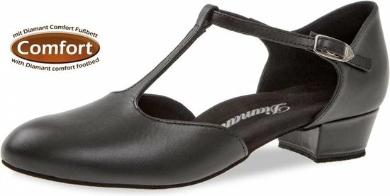 Diamant Dames Dansschoenen 053-029-034 zijn de ideale dansschoenen voor Latin en Ballroom als u op zoek bent naar comfort. Deze elegante dansschoen met t-bandje is onderdeel van de Diamant comfort lijn. Dit houdt in dat dit model een bredere pasvorm heeft met een speciaal comfort voetbed. Dit zachte voetbed loopt subtiel omhoog aan de binnenkant, waardoor de voetzool extra ondersteunt wordt.
