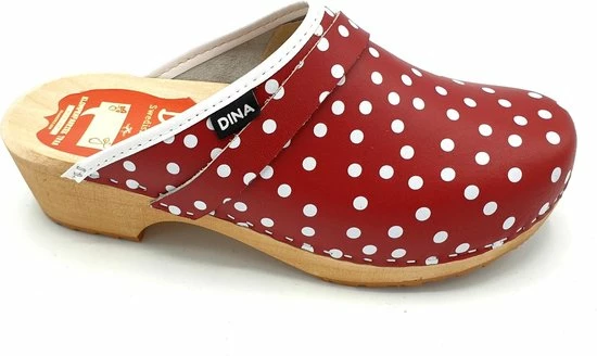 DINA Dames Klompen Zweedse Muilen Rood Met Witte Stip Maat 41