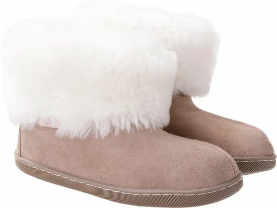 Warme schapenvacht pantoffels van een Nederlands merk.