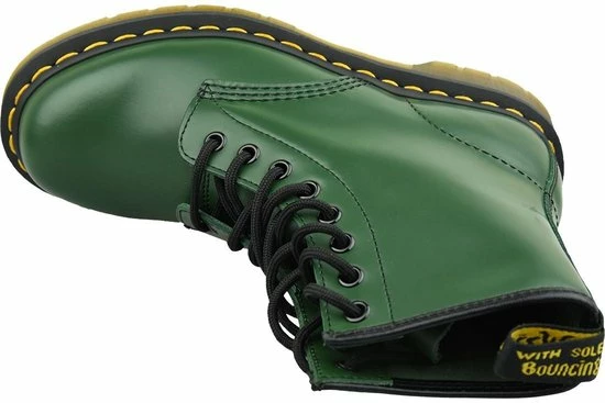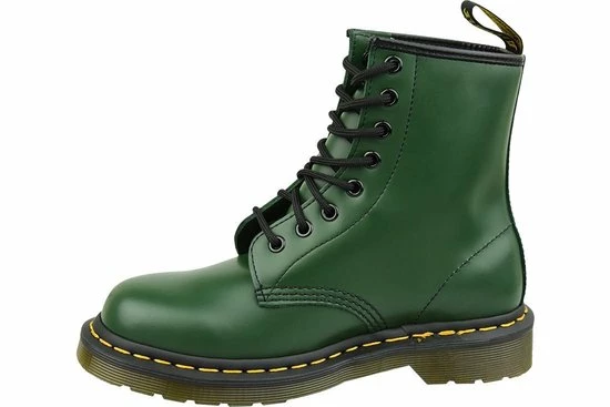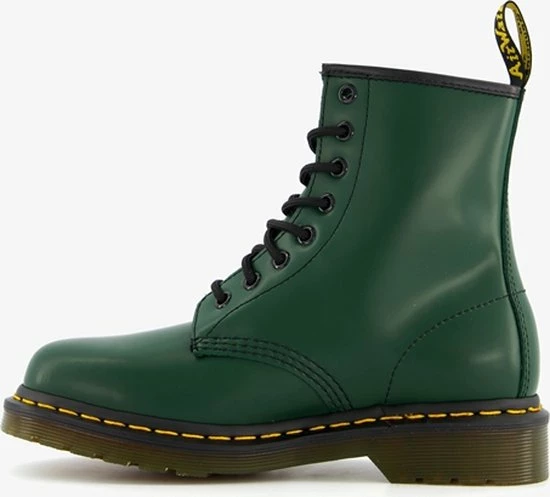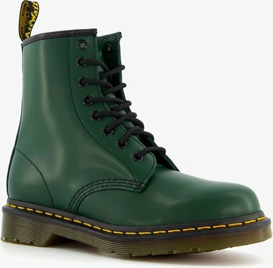 Deze klassieke, donkergroene veterboots van Dr. Martens matchen bij iedere outfit. Combineer de boots met een bloemetjesjurk, onder een rok of match ze bij een stoere jeans. De 1460 Smooth leren veterboots hebben een buitenwerk van (mat) leer, een binnenwerk van leer en een stevige profielzool. De binnenzool is gemaakt van leer, deze is niet uitneembaar. De veterboots zijn voorzien van de kenmerkende gele stiksels bij de zool en het gele aantreklusje op de schacht. De zool is gemaakt van PVC. Maak de Dr. Martens eenvoudig schoon met een vochtige doek en onderhoud ze met de Collonil Vario multifunctionele schoenspray. OP=OP! Let op! Deze smooth leren schoenen moet je goed inlopen. Hoe vaker jij ze draagt hoe soepeler het leer wordt. Van deze schoenen heb je dus jaren plezier! Je kan deze schoenen polijsten voor een glanzende look of opschuren voor een gedragen look.