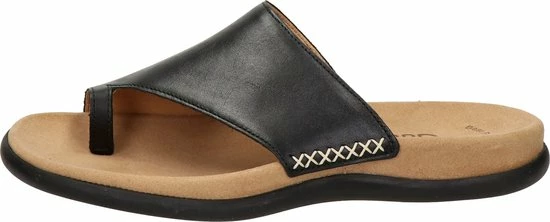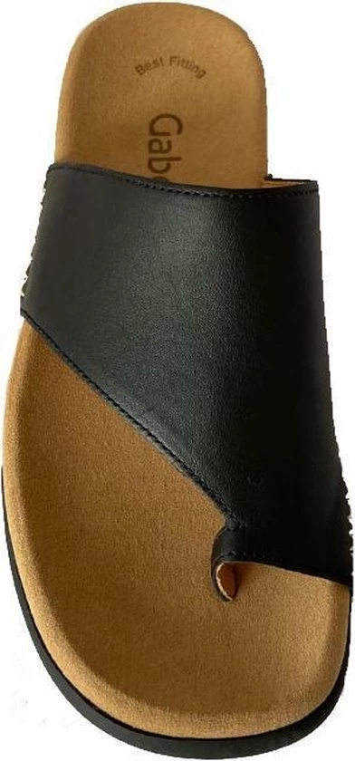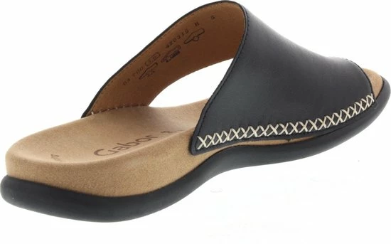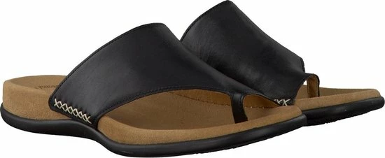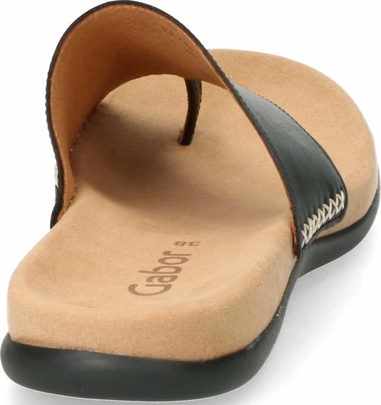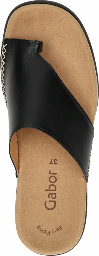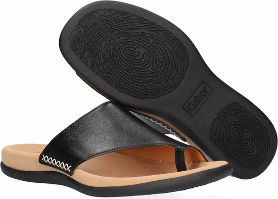Lange zomerse wandelingen zijn met deze zwarte Gabor slippers geen probleem. De buitenkant, voering en de binnenzool van de sandalen zijn gemaakt van leer. De sandalen zijn geproduceerd met de Best Fitting techniek. Hierdoor hebben ze een verbreed loopvlak wat zorgt voor meer comfort. Uniek aan deze sandalen is de zogenaamde ’teentunnel’ waardoor ze goed aan je voeten blijven zitten. De zool is gemaakt van flexibel Pu en heeft een dikte van 2 centimeter.