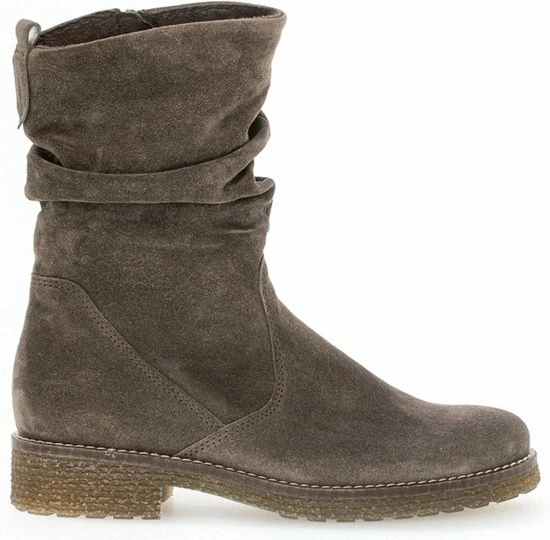 Deze taupekleurige laars 703 komt uit de Comfort collectie van het merk Gabor. Comfort schoenen hebben meer volume bij de tenen en bij de bal van de voet en bieden voor iedere voet de noodzakelijke ruimte. Dit model is uitgevoerd in zacht suède en heeft een binnenvoering van zacht textiel met een uitneembaar voetbed. De schacht heeft een ‘afgezakte’ look en maakt deze laars extra nonchalant. Dit model heeft een normale G-wijdte en met de handige ritssluiting trek je ‘m makkelijk aan en uit. De donkere spekzool geeft de laars de finishing touch. Draag ‘m onder jouw lievelingsbroek of -jurk en rock jouw outfit!