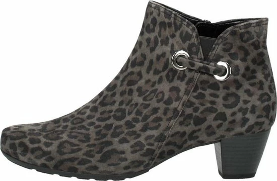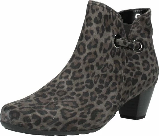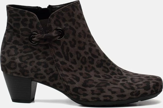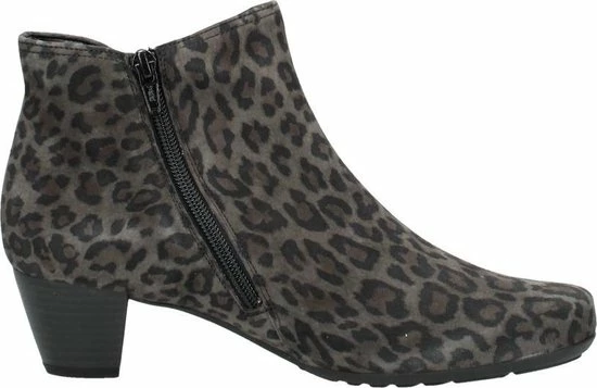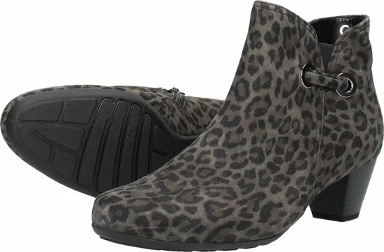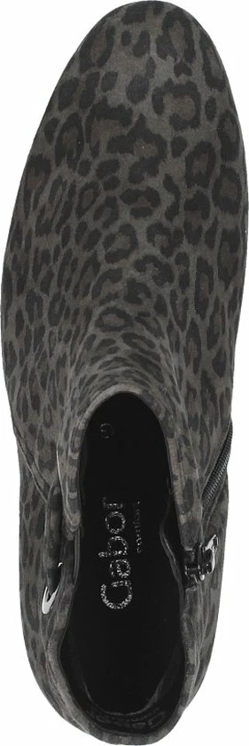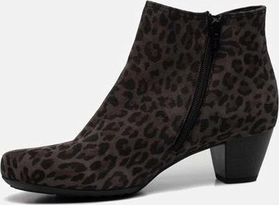 Deze leopard enkellaarsjes voor dames zijn een opvallende verschijning, ze komen uit de comfort lijn van Gabor. Schoenen uit de Comfort lijn hebben extra wijdte bij de tenen, bal en wreef van de voet voor extra comfort. Het bovenwerk van de dames enkellaarsjes is van zacht en soepel suède. De dames laarsjes hebben een stijlvol en modern uiterlijk. De binnenvoering van deze dames enkellaarzen is van aangenaam textiel. Deze Gabor 32.827 enkellaarsjes voor dames hebben een vast voetbed. Het voetbed heeft wijdte maat G, dit is een normale leest wijdte. Verder heeft de hak een hoogte van circa 5 centimeter.