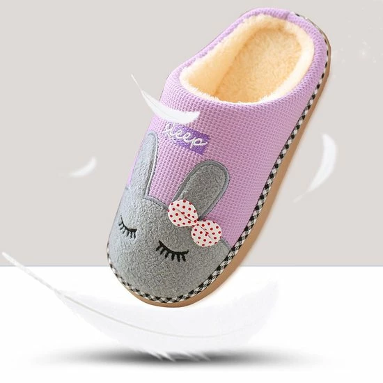 Geweo Be-Home Sloffen – Paas Met Afbeelding Konijn – Kerstmis – Kerstfeest – Christmas Gift – Paashaas Instap Sloffen-Wollen Pantoffels – Dames – Purper – Maat 35/36