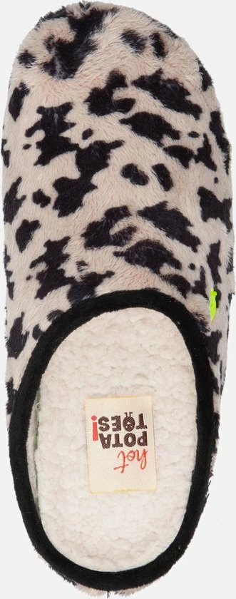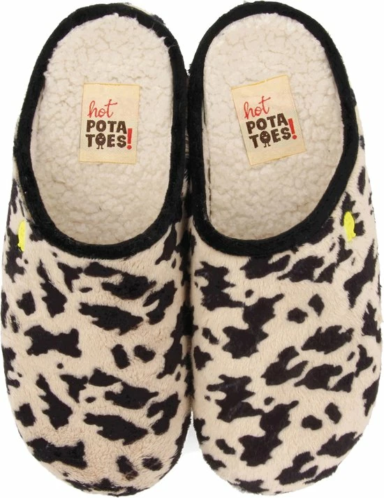 Je kan nooit teveel dierenprintjes hebben. Je loopt op wolkjes met deze toffe sloffen in koeienprint. De zachte binnenzool in combinatie met de stevige buitenzool maken Hot Potatoes de musthave voor deze winter: warm, comfortabel én fashionable! – Hot Potatoes pantoffel voor dames. Comfortabel en Made in Spain. Vervaardigd van polyester en de zool is van natuurlijk rubber met gerecyclede kunststof snippers. Met uitneembare inlegzool van 100% gerecycled PU. Hot Potatoes zijn koud wasbaar.