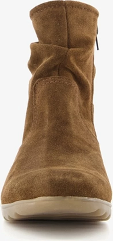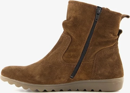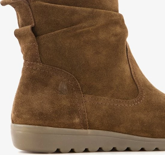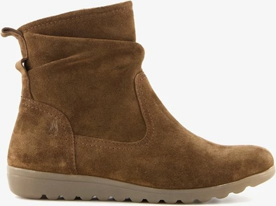 Donkerbruine enkellaarsjes van Hush Puppies. Gemaakt van suède, een binnenwerk van imitatieleer en een stevige profielzool. De laarsjes hebben een ritssluiting aan de binnenzijde en aantreklusjes aan de achterzijde voor een makkelijke instap. Het vaste voetbed is gemaakt van textiel. De enkellaarsjes van Hush Puppies hebben een zachte, warme voering, rubberen zool en een schachthoogte van 13 cm.