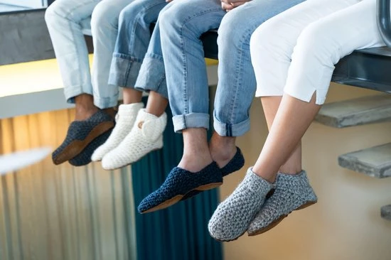 Handgemaakte sloffen die perfect de vorm van je voet volgen als een tweede huid. De unieke constructie van de hiel zorgt voor ervoor dat de sloffen op hun plek blijven en niet afzakken. Gemaakt van schapenwol en bamboo garens voor maximaal draagcomfort.