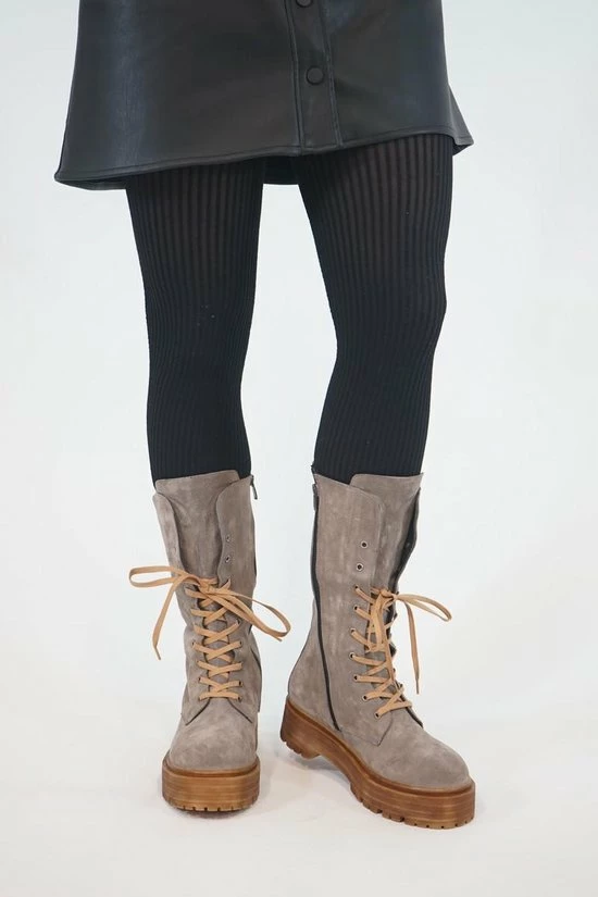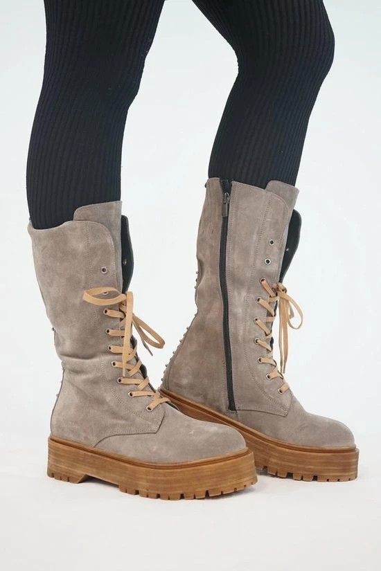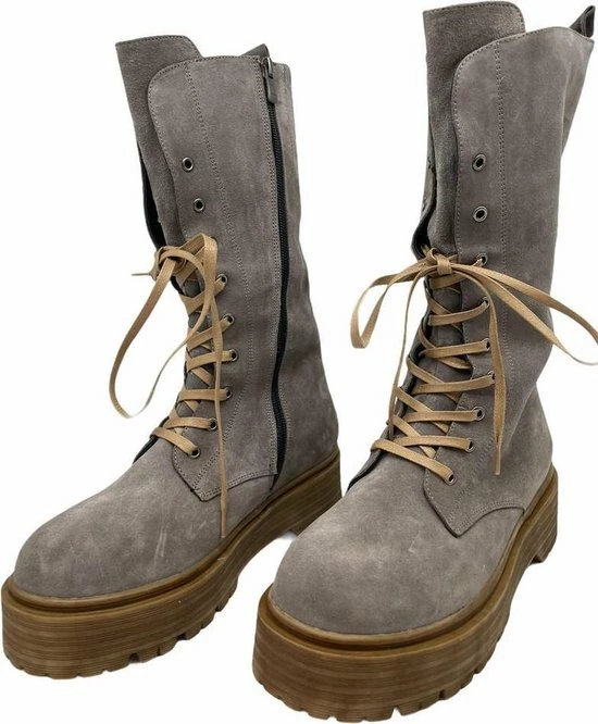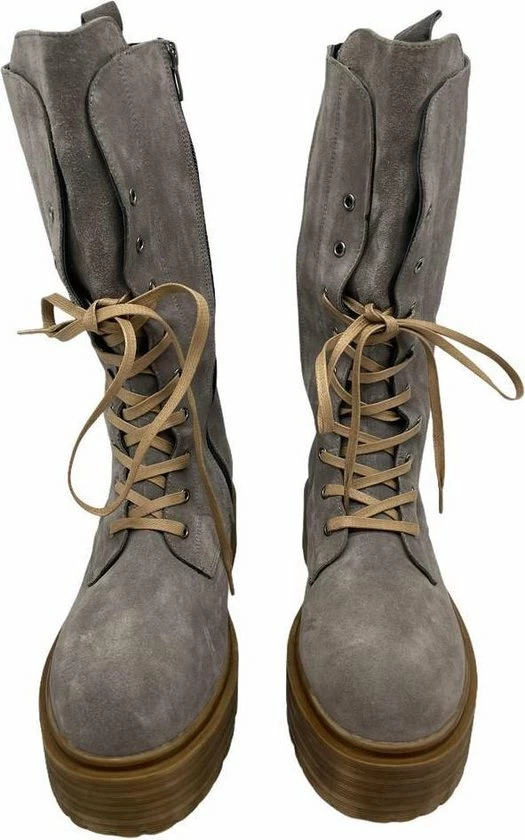 La Pèra Grijze Plateaulaars Suède Vrouwen Hoge Veterboots Grijs Dames – Maat 37