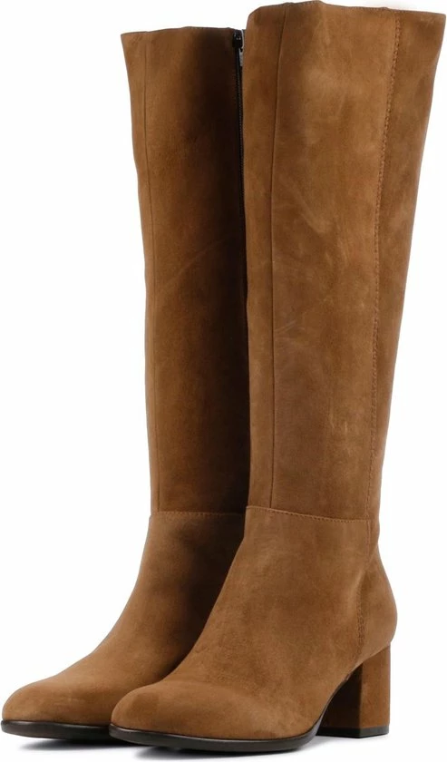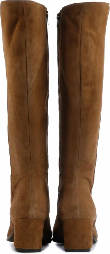 Hoge midden bruine suède laars met rits voor dames van het Italiaanse merk Lamica. Deze hoge laars met halfronde neus is uitgevoerd in bruin suède met een hele rits aan de binnenzijde van de schacht. De binnenzijde beschikt tevens over elastiek om het aan- en uittrekken te versoepelen. De binnenvoering is van stof, het voetbed is van leer. Een stevig contrefort draagt bij aan het comfort. Verder heeft de rubberen loopzool een fijn profiel voor een stevige grip. De hakhoogte bedraagt 5 cm.