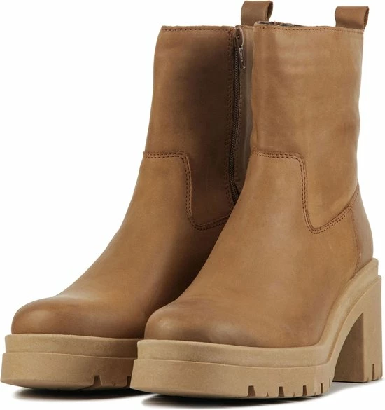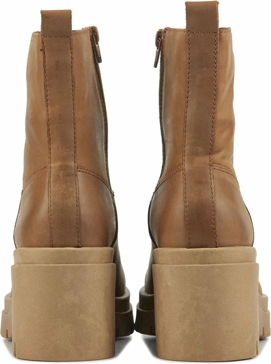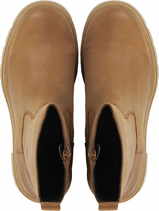 Leren enkellaars voor dames van het merk Lina Locchi. Deze enkellaars met ronde neus is uitgevoerd in de kleur midden bruin . De binnenzijde van schacht bevat een rits om het aan- en uittrekken te versoepelen. De binnenkant is uitgevoerd in leer en een stevig contrefort draag bij aan het loopgemak. De hak meet circa 8 cm en de zool heeft een plateau van 3 cm een grof profiel.