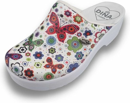 Medische Dames Klompen PU Zool – PU Klompen Met Kunststof Zool – Ziekenhuis Klompen – Zorgklompen – DINA CLOGS – Vlinderbloemetjes – Maat 38