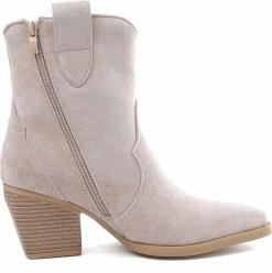 Weloveshoes SmileFavorites® Dames Cowboylaarzen Met Hak Kort – Suedine – Beige – Maat 37