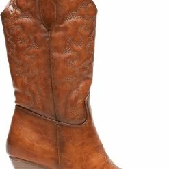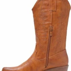 Weloveshoes SmileFavorites® Dames Cowboylaarzen Met Hak – Imitatieleer – Camel – Maat 38