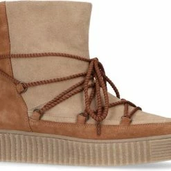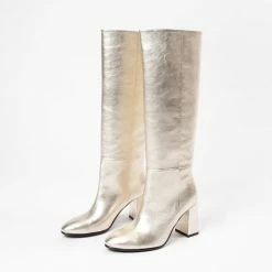 Manfield – Dames – Goudkleurige Leren Hoge Laarzen Met Hak – Maat 38