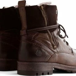 NoGRZ P.Post – Dames Leren Enkellaars – Winter Veterboots – Wol Gevoerd – Donkerbruin – Maat 41