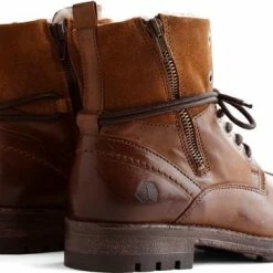 NoGRZ P.Post – Dames Leren Enkellaars – Winter Veterboots – Wol Gevoerd – Cognac – Maat 42
