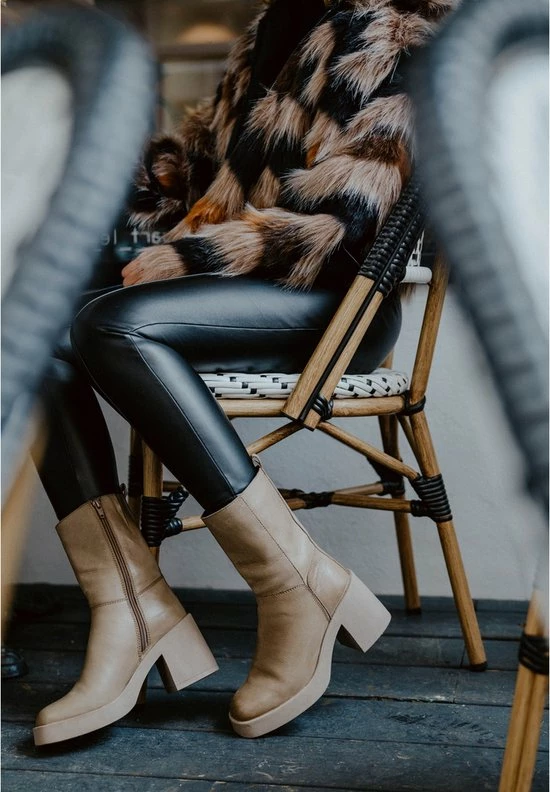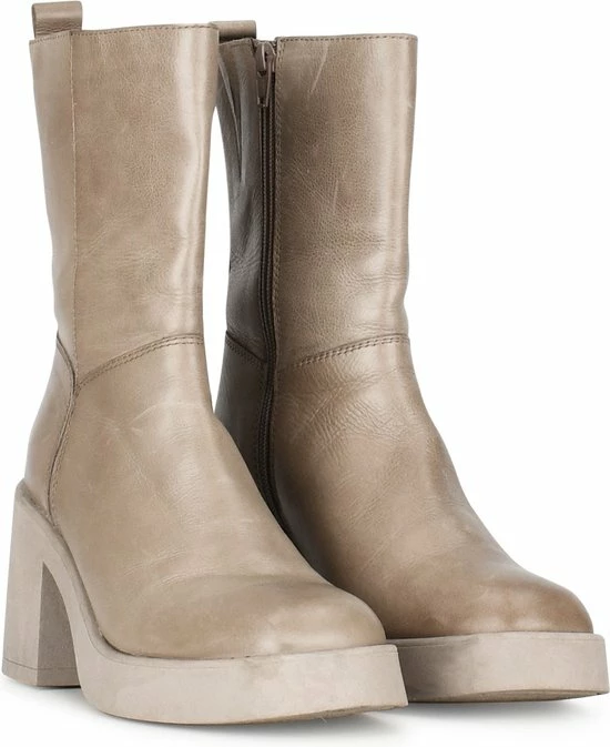 PS Poelman BOMMA Dames Enkellaarzen – Taupe – Maat 38