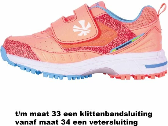 Powerpitch Hockey Shoe Outdoor van Reece Australia in de kleur rood, geschikt voor heren en dames. Deze outdoor hockeyschoen is door de noppenzool perfect voor kids die optimale grip nodig hebben op zowel water- als zandvelden. Het bovenwerk is gemaakt van materiaal dat water afstoot. De noppenzool is voorzien van een stabiliteitsplaat en de lichtgewicht, schokdempende tussenzool geeft voldoende demping. De verharde hielkap zorgt voor extra bescherming van de hiel. In maat 28-33 heeft deze schoen een klittenbandsluiting en maat 34, 35, 36, 37 en 38 gaan dicht met veters.