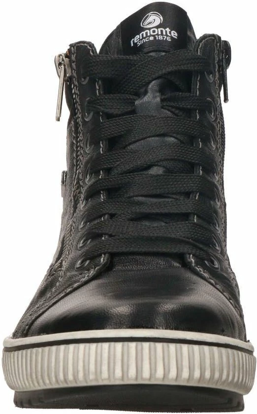 Remonte dames boot uit de Softline serie. Deze boot is uitgevoerd in kreukelleer met synthetisch materiaal. De schoen is voorzien van veters en een ritssluiting voor een gemakkelijke instap. De schoen is voorzien van Remonte-Tex dat beschermend werkt tegen nat, guur en koud weer. Verder heeft de schoen een warme voering, een uitneembaar voetbed en een sportieve crêpe loopzool met antislip profiel.