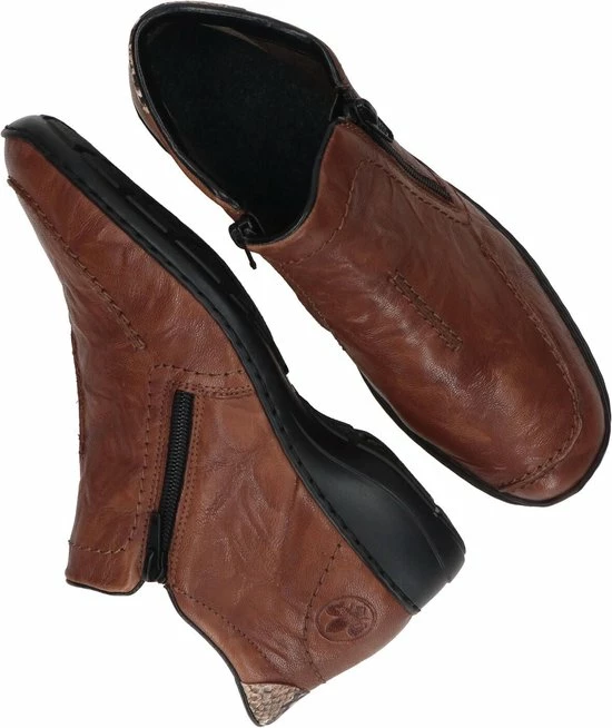 Enkellaarsjes Plat cognac in maat 41 van Rieker