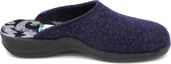 Rohde dames pantoffel slipper, model 2309 is gemaakt van vilt. Ter decoratie zijn er stiksels en een printje en een merkopdruk op de binnenzool aangebracht. De pantoffel valt normaal en heeft een vlakke rubberen loopzool.