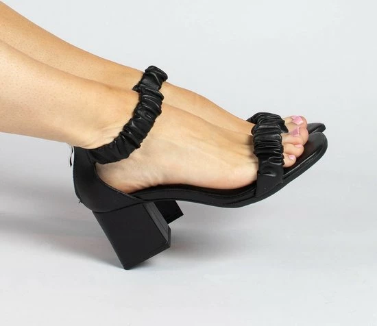 Sacha – Dames – Zwarte Sandalen Met Geplooide Details – Maat 39