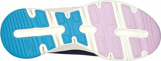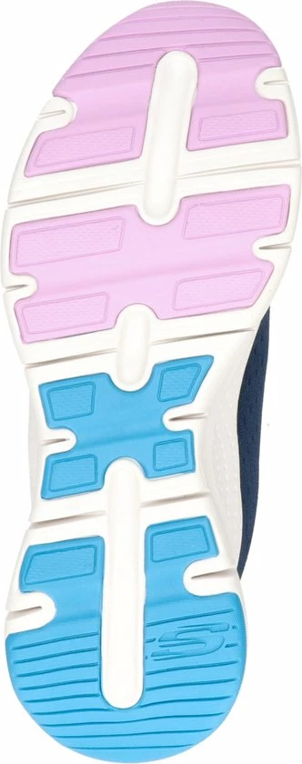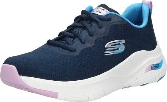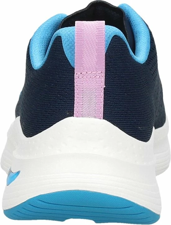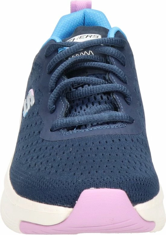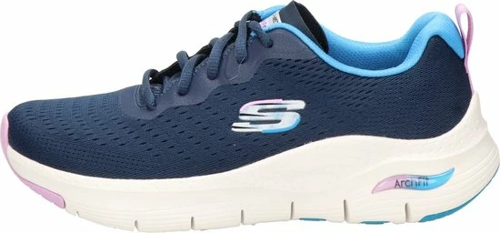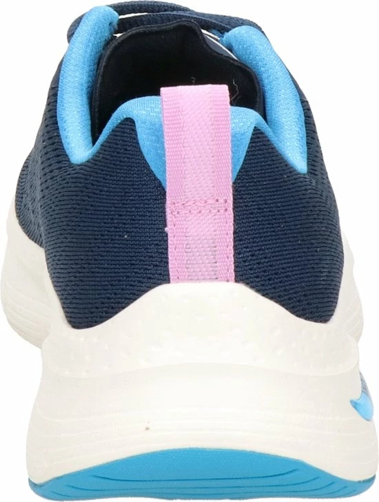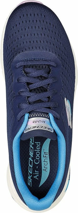 Skechers Arch fit dames sneaker. Sportieve Skechers sneakers met kleurrijke details, comfy én stijlvol! Deze sneakers zijn uitgevoerd in textiel. Voorzien van een textielen binnenvoering. Met een comfortabele Air-Cooled binnenzool van textiel. Met een rubberen loopzool.