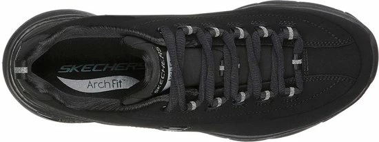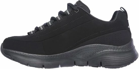 De zwarte Skechers Arch Fit Metro Skyline sneakers bieden jouw voeten het comfort dat ze verdienen. De sneakers zijn gemaakt van nubuckleer en hebben synthetische inzetten voor extra structuur. De zachte voering en binnenzool bestaan allebei uit textiel. De Arch Fit binnenzool zorgt voor uitstekende ondersteuning, zelfs voor de lastigere voeten. De lichte tussenzool garandeert demping bij iedere stap terwijl de flexibele rubberen loopzool grip biedt. Met de vetersluiting pas je gemakkelijk de pasvorm aan, zodat de sneakers goed aansluiten. De zwarte Skechers Arch Fit Metro Skyline sneakers hebben een uitneembaar voetbed.