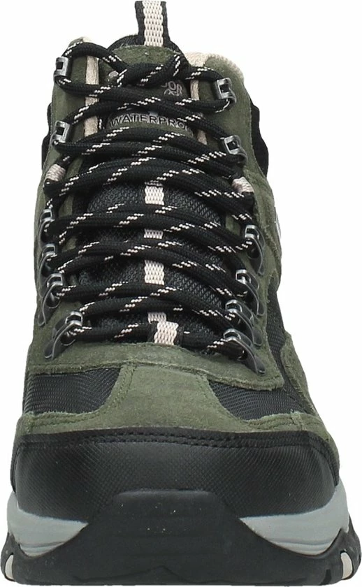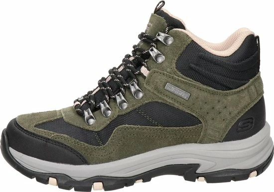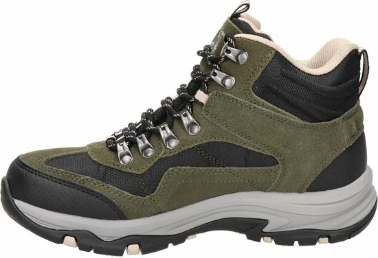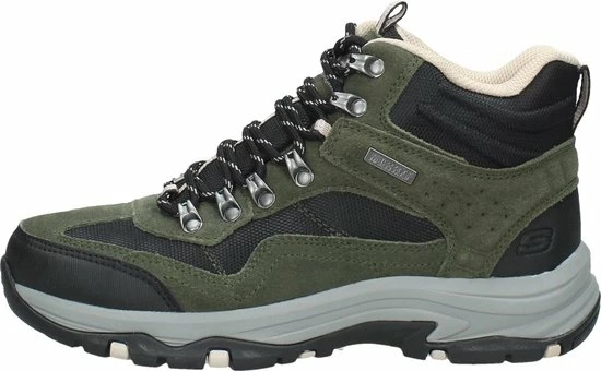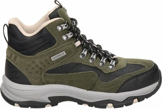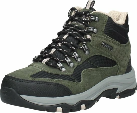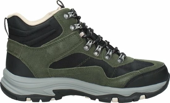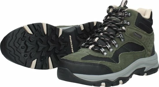 De donkerbruine Skechers Trego Base Camp wandelschoenen staan klaar voor al je avonturen en wandelingen. De schoenen bestaan uit een combinatie van suède en textiel met zwarte synthetische inzetten voor extra duurzaamheid. Extra handig is dat de schoenen waterproof zijn! De veterboots hebben een voering en binnenzool van textiel voor optimaal draagcomfort en een ademend vermogen. Het Air-Cooled Memory Foam voetbed zorgt voor urenlang wandelplezier en demping bij iedere stap. Ook hebben de schoenen een Relaxed-Fit, waardoor je meer bewegingsvrijheid ervaart. De unieke rubberen loopzool biedt uitstekende grip op verschillende typen ondergrond en absorbeert schokken. Zo ga je altijd veilig op pad met de donkerbruine Skechers Trego Base Camp wandelschoenen.