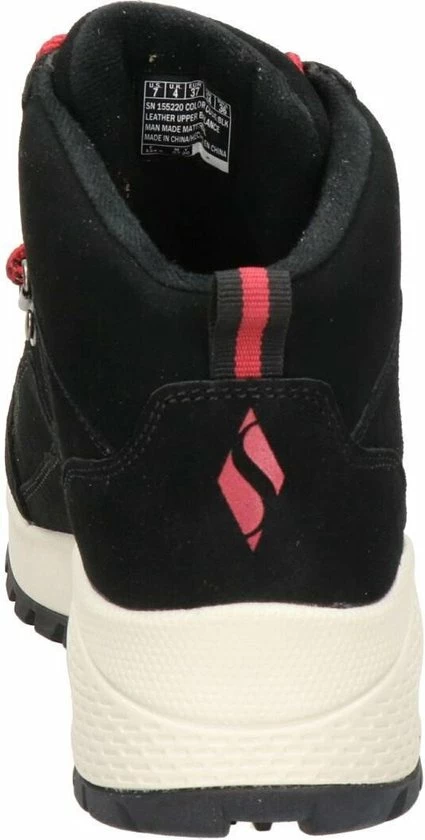 Deze zwarte Skechers Uno Rugged One veterboots zijn ideaal voor al jouw avonturen! De schoenen zijn gemaakt van suède en zijn voorzien van sierstiksels, opvallende roze veters en een lusje aan de achterkant. De schoenen zijn waterafstotend en houden je voeten dus heerlijk warm tijdens al je wandelingen. De binnenzool met Air-Cooled Memory Foam geeft demping tijdens het lopen voor extra comfort. De boots zijn voorzien van een verborgen sleehak met een hoogte van 2,5 centimeter. Deze Skechers Uno Rugged One veterboots hebben een rubberen profielzool die veel grip geeft.