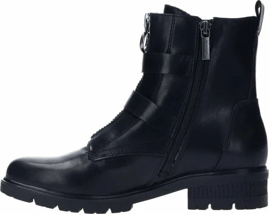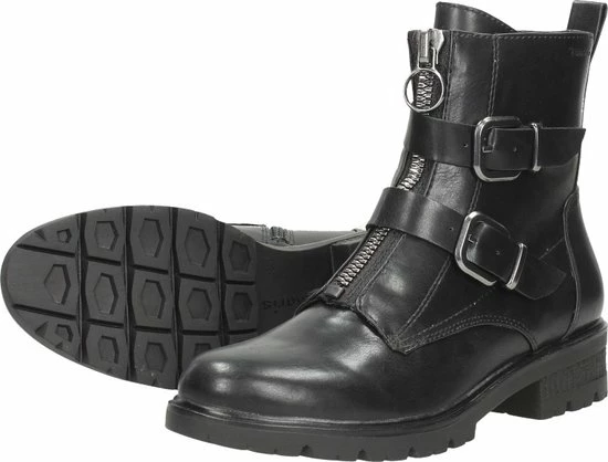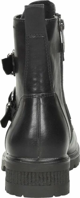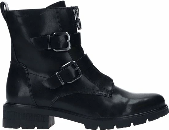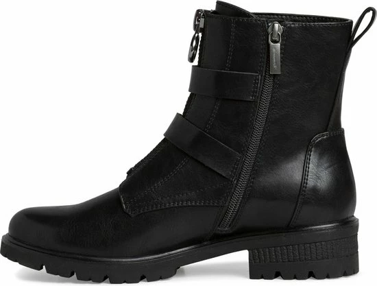 Deze stoere biker boots zijn een echte aanvulling op jouw garderobe! De boots zijn gemaakt van synthetisch materiaal. De voering en de comfortabele binnenzool zijn gemaakt van textiel. Ter decoratie zijn er twee gespen, een sierrits op de wreef, verschillende inzetten en sierstiksels aangebracht. Door middel van de rits aan de zijkant en het aantreklusje aan de achterkant kan je de boot gemakkelijk aan en uit doen. De boots hebben een Touch-It voetbed. Dit zorgt ervoor dat het voetbed zich aanpast aan jouw eigen voeten. Extra comfortabel dus! De rubberen zool met profiel geeft de schoen een stoere look. De blokhak heeft een hoogte van 3 centimeter. Deze zwarte Tamaris biker boots hebben een vast voetbed.