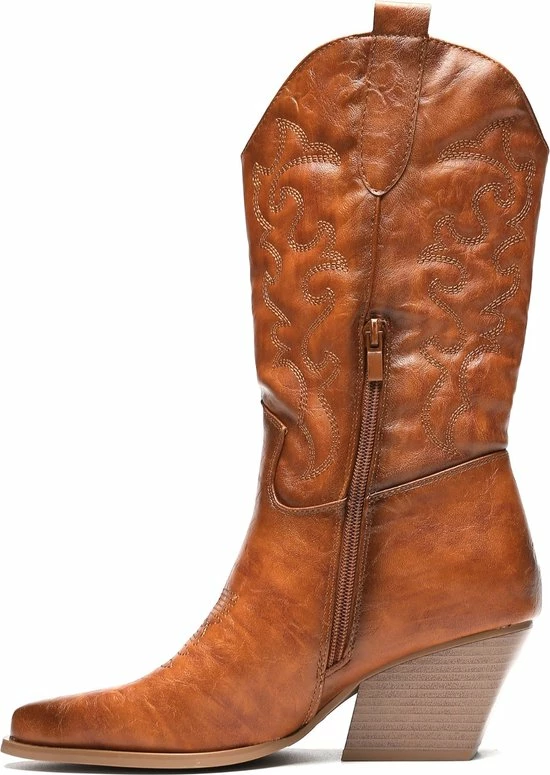 Weloveshoes SmileFavorites® Dames Cowboylaarzen Met Hak – Imitatieleer – Camel – Maat 38