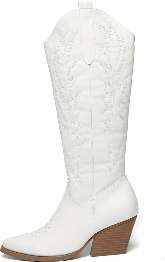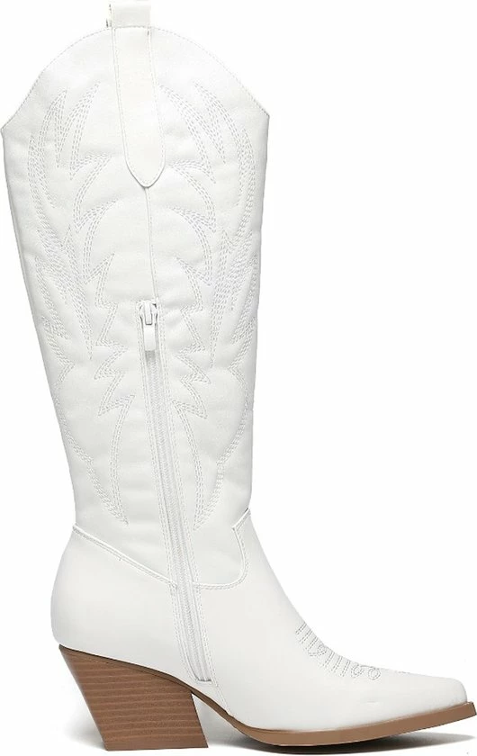 Weloveshoes SmileFavorites® Dames Cowboylaarzen Met Hak – Imitatieleer – Wit – Maat 40