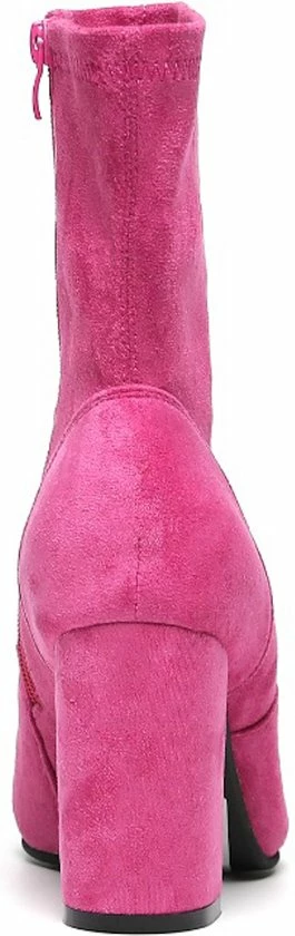 Fuchsia suedine enkellaarsjes met hak. Verkrijgbaar in maat 36 t/m 41. Instaprits aan binnenzijde. Deze trendy laarsjes maken je outfit helemaal af en mogen niet ontbreken in je schoenencollectie.