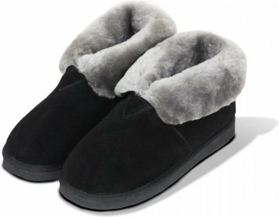 Lederen huisschoen Pantoffel dames en heren gevoerd met lamswol voor heerlijk warme voeten.